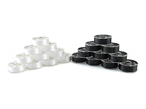 - 12 Black and 12 White Prewound Bobbins (24 Total)