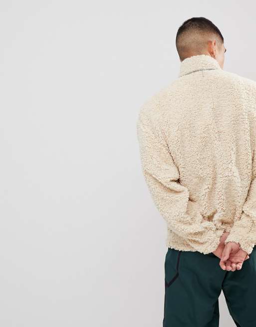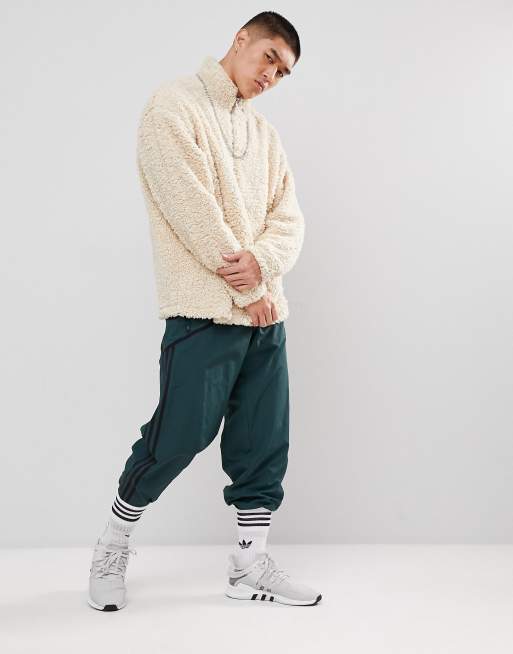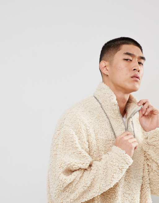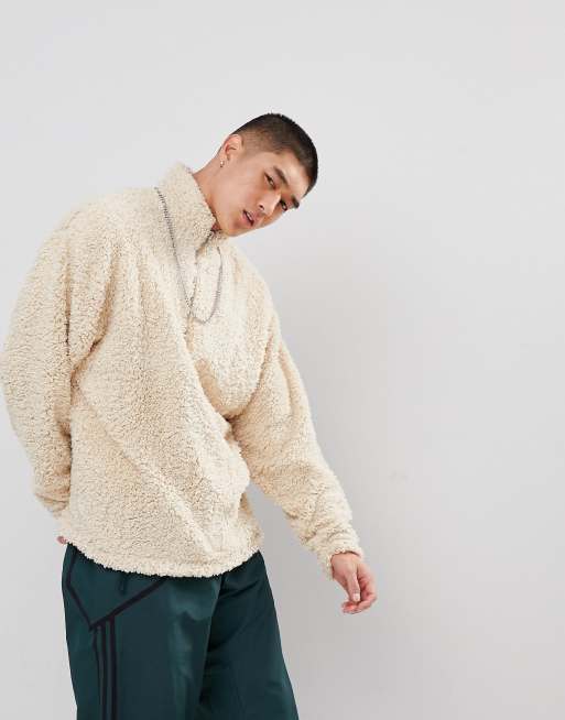 ASOS Oversized Sweatshirt In Borg With Half Zip Track And Ring Pull