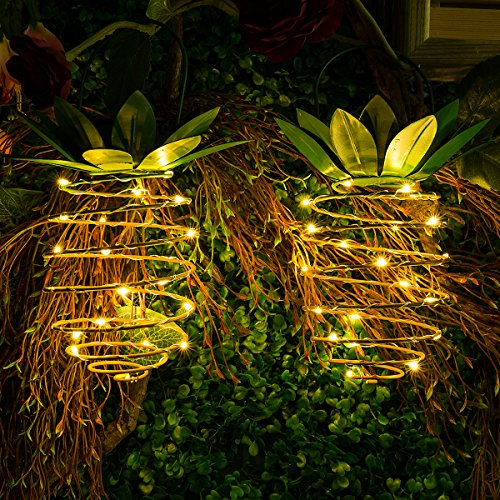 KAZOKU Waterproof 2-Pack Pineapple Fairy Gardens Solar Lights,20 LED Fairy String Light for Garden Patio Path Home Décor Tree Jar Lantern Lighting Warm White