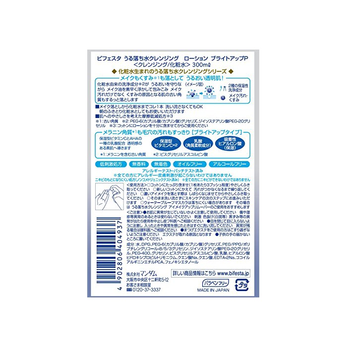 원본상품명: ビフェスタ うる落ち水クレンジング ロ?ション ブライトアップ 300mL