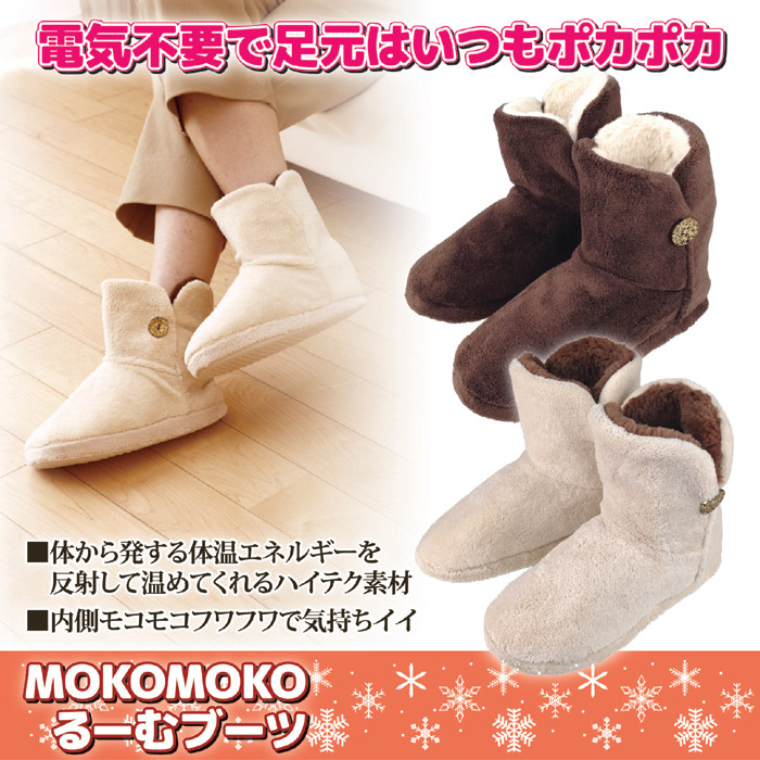 ●このMOKOMOKOるーむブーツは、底部に特殊な生地を使用していて、体温からの輻射熱を使ってポカポカになるハイテク製品です。
