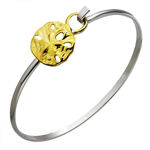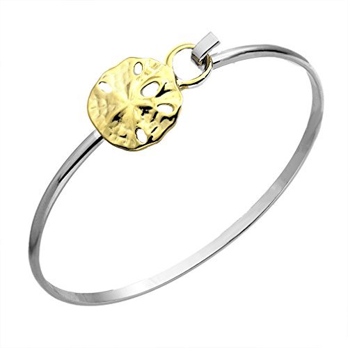Cape Cod Jewelry-CCJ Sand Dollar Cuff Bracelet is TwoTone finish Rhodium plated for Superior Finish And Anti-Tarnish Properties and is Hand Polished to a very high lustre rivalling Sterling Silver without having the silver drawbacks... The Sand Dollar is layered with a 24K Gold Finish...Cape Cod Jewelry Sand Dollar Cuff Bracelet is elegant yet casual with its user friendly Hook Latch Clasp. You will love the ease of use when you're going to garden or better yet when you forget to remove it when you're in line at the airport... Wear it with any fashion or any special occasion. A fun bracelet great for gift giving... Sand Dollars have symbolized Internal Strength, Inspiration and Bravery among others...Please measure your wrist for the correct size before ordering the bracelet. A flexible seamstress tape is the easiest method.Feature