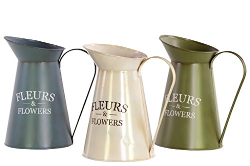 Urban Trends Ecru, Slate Gray and Dark Olive Green Metal Round Pitcher with Handle and Increased Bottom (Assortment of 3)