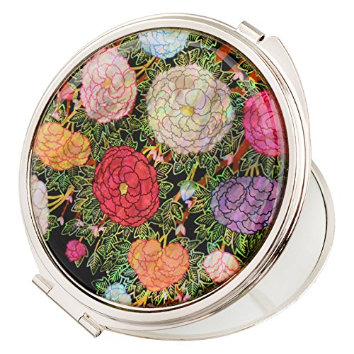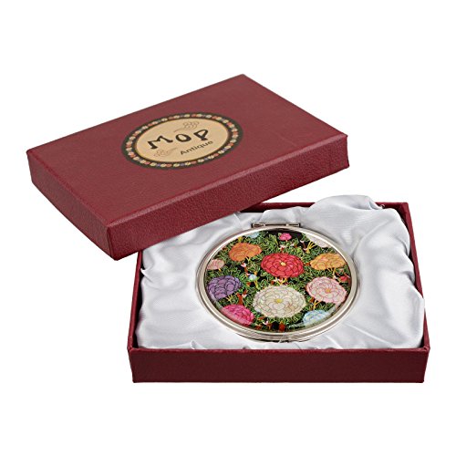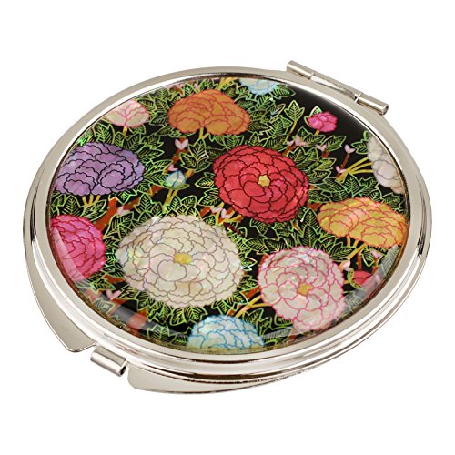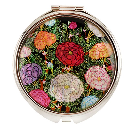 MOP Antique Compact Makeup Mirror Travel Magnifying Double Sided Mother Of Pearl Peony Blossom mms32