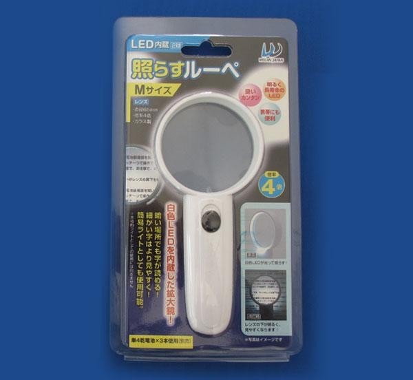 | 明るいところでは通常ルーペとして、少し暗いところではスイッチ一つでライト付きルーペとして使用可能。細かい字がライトを付けることによってさらに見やすくなります♪歪みの少ないガラス製倍率4倍のルーペだから使いやすい!! |