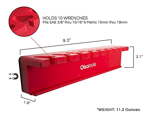 Olsa Tools | Magnetic Wrench Organizer | Fits SAE 3/8" thru 15/16" & Metric 10mm thru 19mm | Premium Quality Tool Organizer