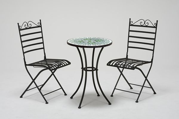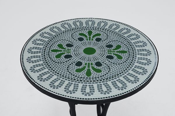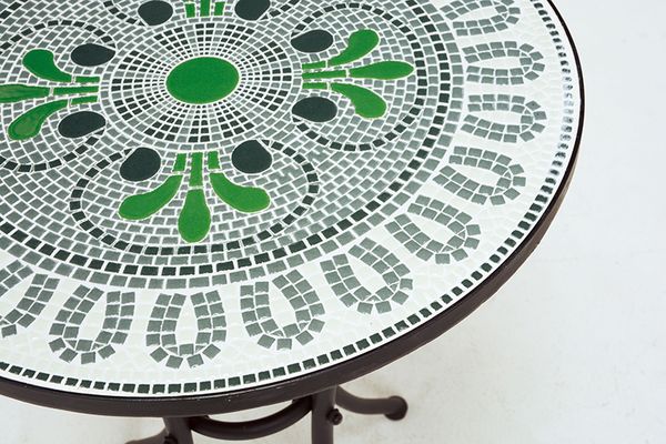 ●グリーンのアクセントが特徴の複雑な模様が美しいガーデンテーブル