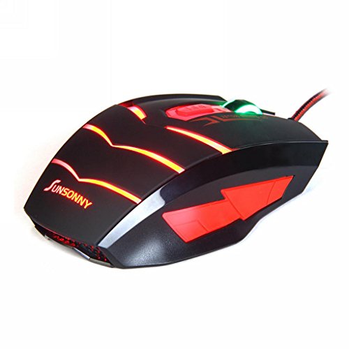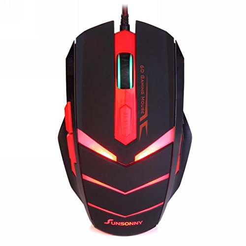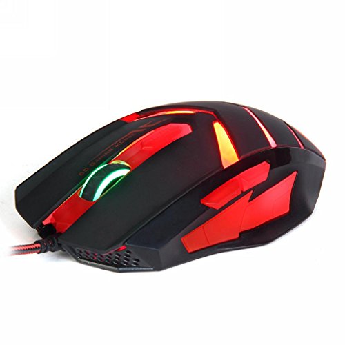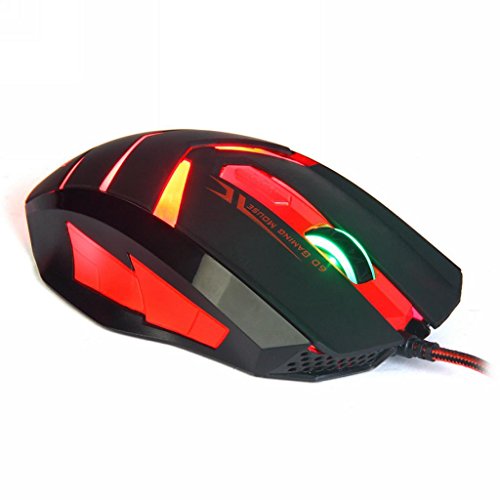 Gaming Mouse USB Wired 6 Button 1600DPI LED Red Light Mouse(Black) by Qisan