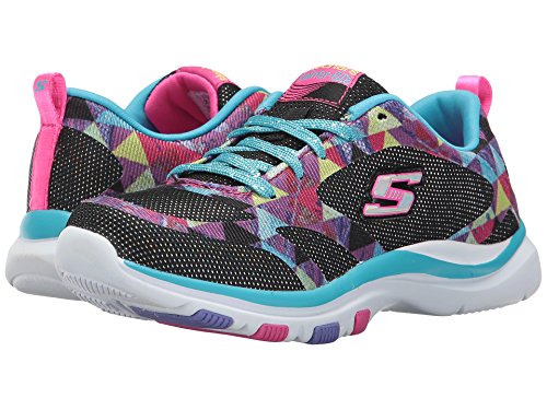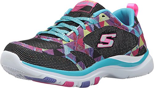 Skechers Kids Girls' Trainer Lite Sneaker, Black/Multi, 4.5 Medium US Big Kid