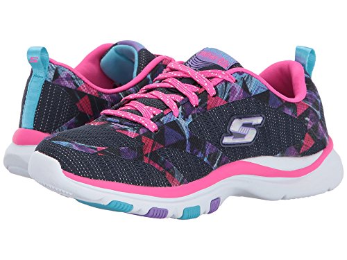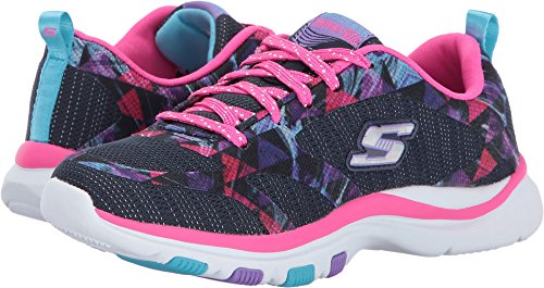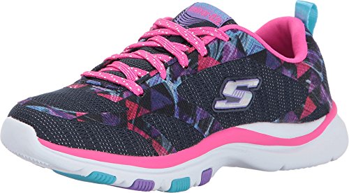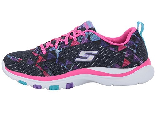 Skechers Kids Girls' Trainer Lite Sneaker, Navy/Hot Pink, 4.5 Medium US Big Kid