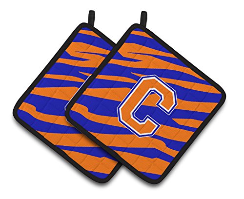 Caroline's Treasures Monogram Initial C Tiger Stripe - Blue Orange Pair of Pot Holders CJ1023-CPTHD, 7.5HX7.5W, Multicolor