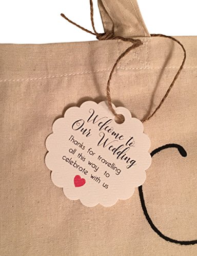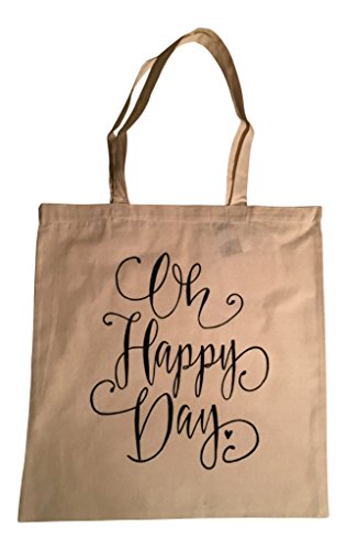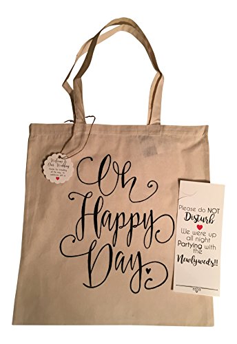 Product Description Gift for your family and friends that traveled to attend your wedding with a Oh Happy Day Wedding Welcome Bag, Thank You Tag and Door Hanger. The door hanger can be customized with your name and wedding date. It also comes with a list of items you can add to the bag to make sure your guests are comfortable and they will appreciate your thoughtfulness. The bag is 100% cotton canvas, so it is durable yet cute! This will be a bag that your guests will treasure long after your special day. 0