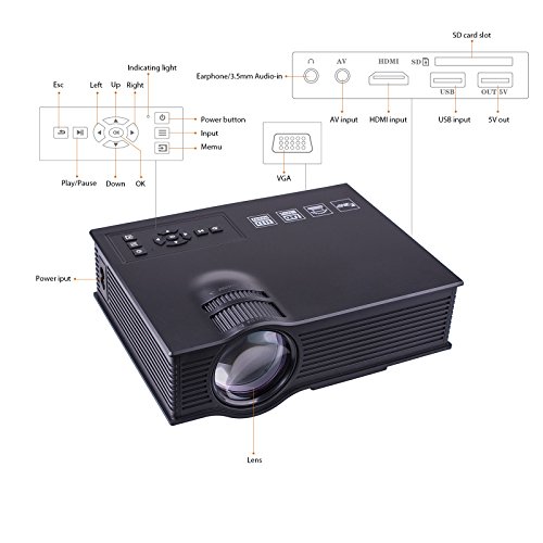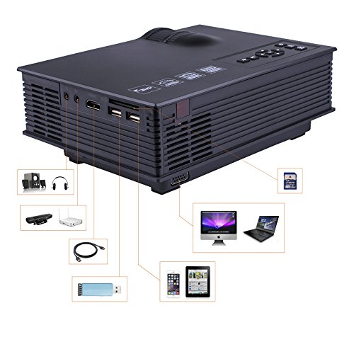 With the design of multi-functional interfaces including, VGA, USB, HDMI, SD card and 3in1 video and Audio input, the projector is easily connected to most digital devices.