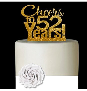 CakeSupplyShop Item#052CTA - 52nd Birthday / Anniversary Cheers Super Gold Glitter Sparkle Elegant Cake Decoration Topper