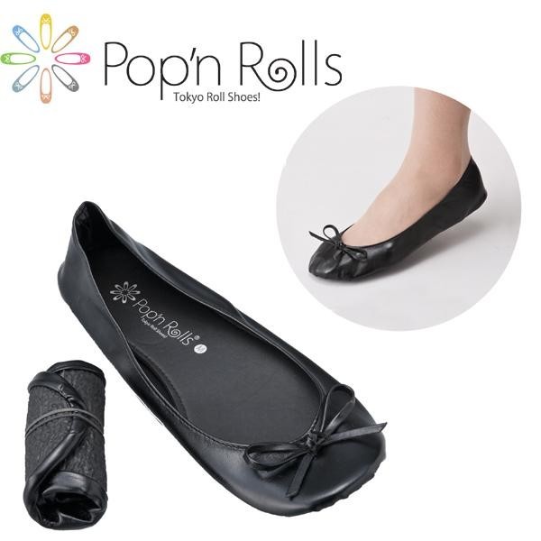 | くるんと丸めて持ち運べるバレエシューズタイプのポケッタブルシューズ!使い方はアイデア次第!オフィスや自宅のルームシューズ、ホテルや飛行機の中のセカンドシューズ、授業参観に必要な携帯スリッパ、ドライビングシューズ、外出先で歩き疲れた時や足が痛い時のレスキューシューズ。足にフィットする柔らかな素材のナイトブラックは、不動の人気色です。 |