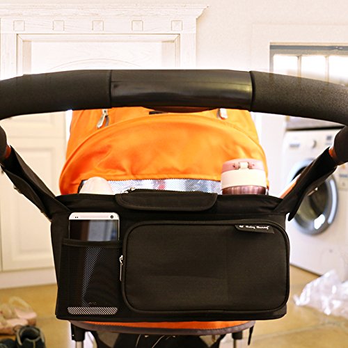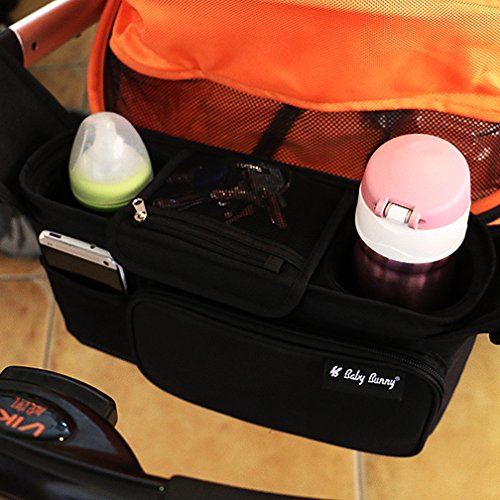 Our efficient stroller organizer is compatible with all stroller models, ranging from Britax to Graco, Baby Trend, Schwinn and much more! Designed for busy parents who need to keep both the baby's stuff and their own essentials neatly stored and organized, our baby organizer proudly provides unbeatable quality that surpasses "luxury" products on the market, everything at just a fraction of their price!While the 2 deep, well-insulated drink holders are perfect for carrying 1-2 bottles, 1-2 cups or 1 bottle and 1 cup, the zippered pocket will be just great for items such as phones, your keys, documents, makeup essentials and much more! No more struggling with a cumbersome purse or backpack to carry everything you need while strolling!