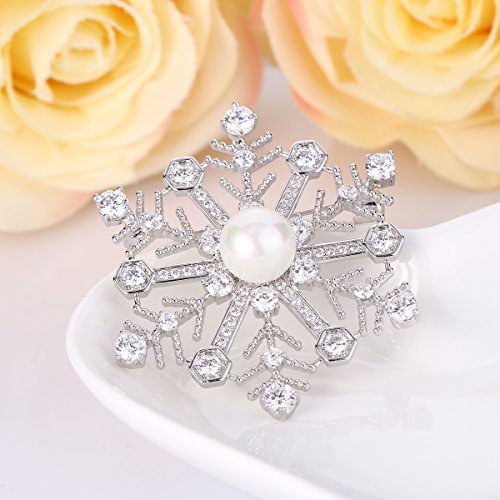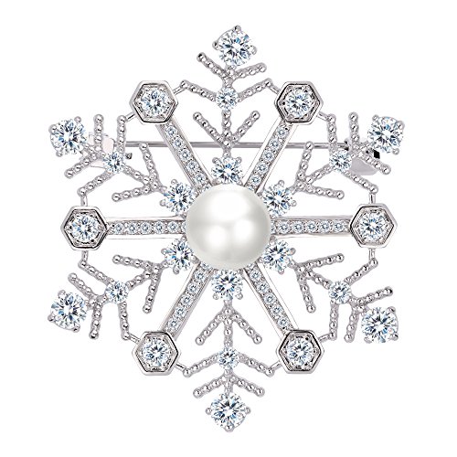 Simulated Pearl Color: White; CZ Color: Clear; Length: 1.8in, Width: 1.6in; Total Weight: 11.2g.