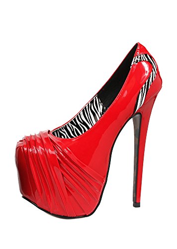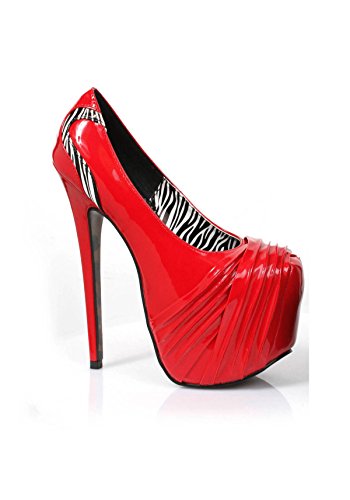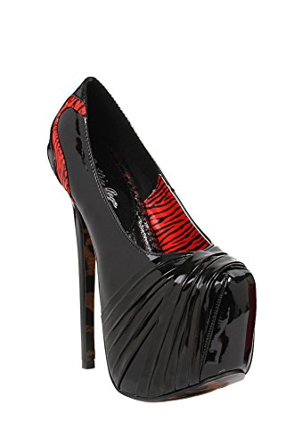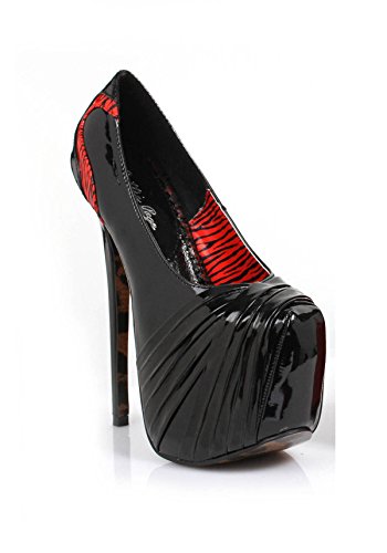 Product Description6" heel with 2.5" concealed platform pump with rouching and zebra details0