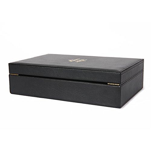 - High Quality, Solid Hardwood - 8 Equally Spaced Compartments - Brushed Brass Latch - Gold Embossment - "Let Your Journey Begin"