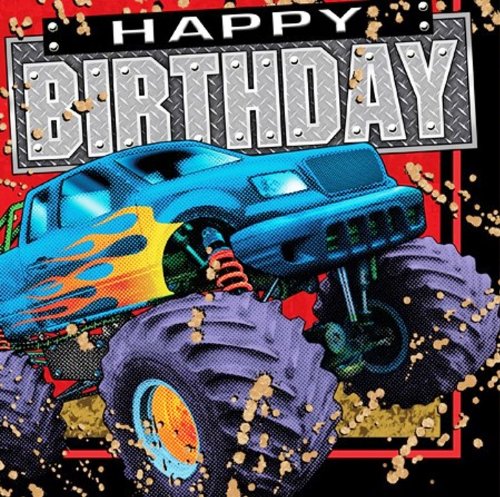 - Mudslinger monster truck themed happy birthday luncheon napkins