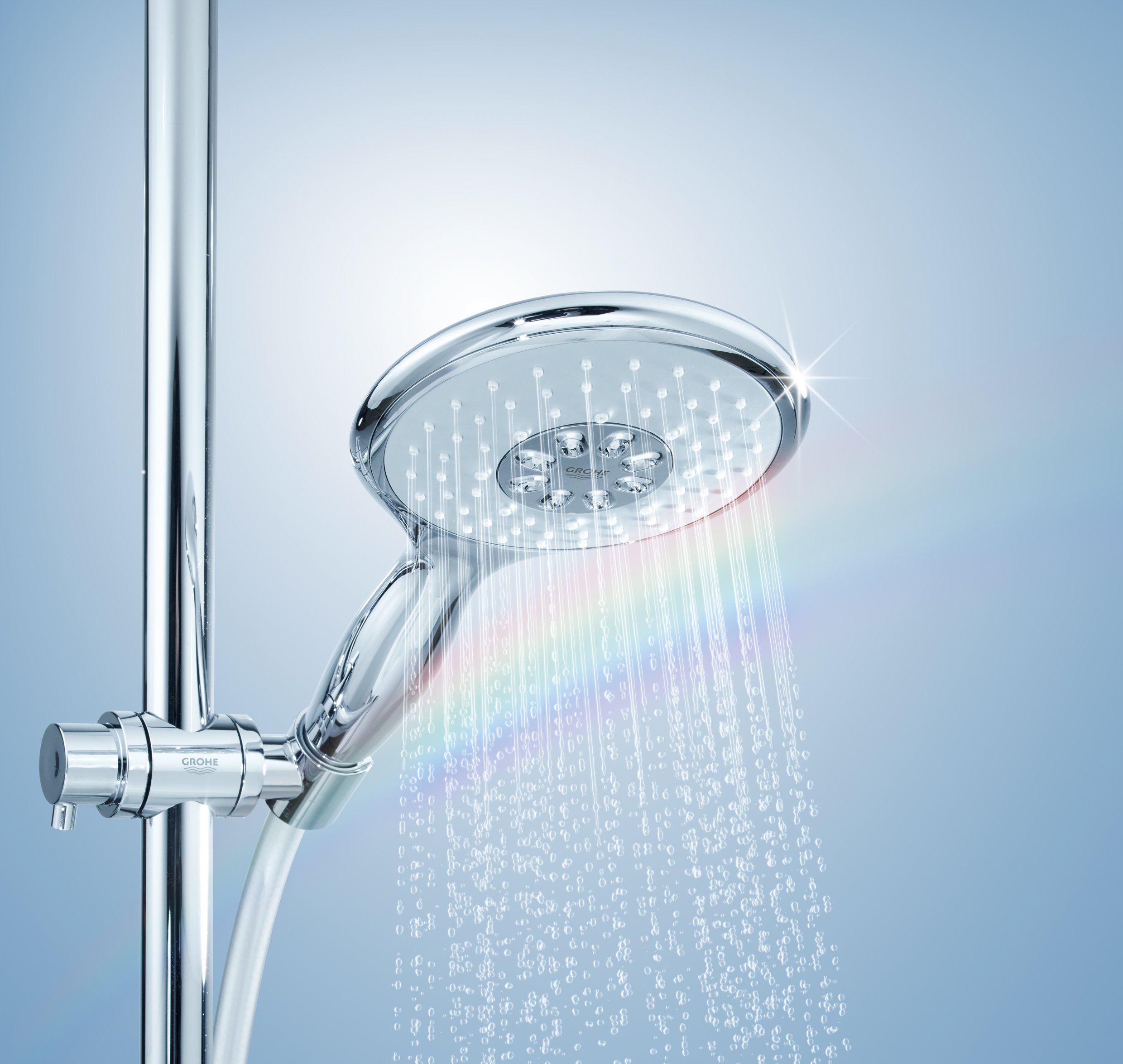 Chic natural color appeared in the most innovative shower in the history of Groe, equipped with Bocoma where the spray automatically moves by water pressure.