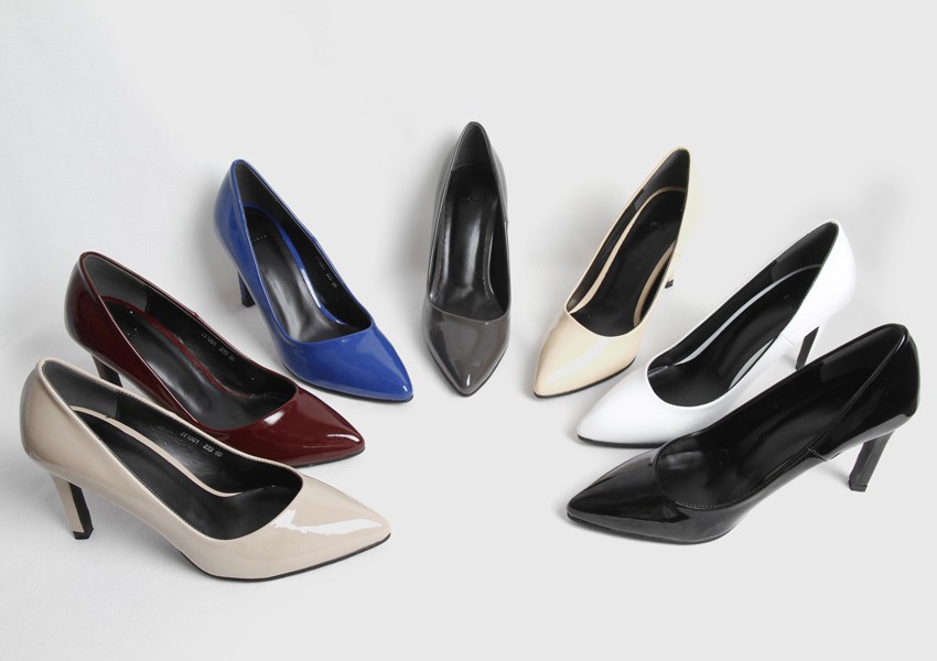 レディースファッションの婦人靴(レディースシューズ)の分野でパンプスは代表的なカテゴリー。スニーカー、ミュール、サンダルなど数かあるレディスファッションシューズの中でも最もスタンダードな種類で痛くないフラット(ぺたんこ)やピンヒール、ローヒール、オープントゥ、ストラップ、太ヒール、厚底、ポインテッドトゥ、バイカラー、リボン付きや、ひょう柄、メッシュなど種類や形状も多く存在し最も女性らしさを引き立て世界で多くの女性に愛されています。