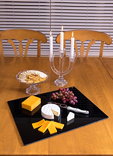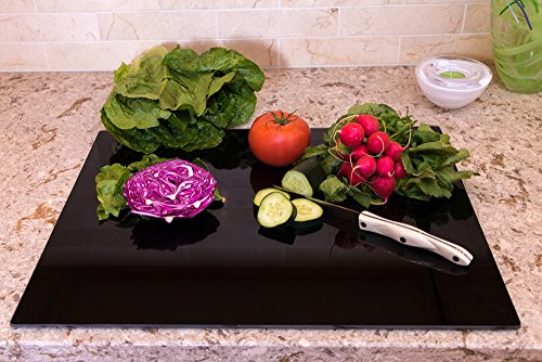 BEAUTIFUL AND MODERN: As a space saver, it protects counter and other surfaces from heat, condensation, and scratches. The black glass is great for that clean, minimalistic feel. They’re also perfect for customized etching to make a great wedding gift or birthday gift. Cooking and preparing food with these glass cutting boards couldn't be easier, or better looking
