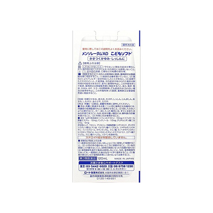 원본상품명: 【第3類??品】メンソレ?タムADこどもソフト 120mL