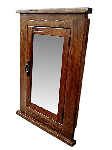 Studio : DE Wood Craft Cabinets Publisher : DE Wood Craft Cabinets Product Description Recessed . This is an unique piece of a kind mirrored cabinet that is handmade from solid Poplar . It can be used as a medicine cabinet, wall cabinet, jewelry cabinet or even in the laundry room. Product Description An Old Primitive style of Mission Medicine Cabinet . Sturdy wood construction features a spacious cabinet behind a mirror door. Inside are 2 adjustable wood shelves to suit your specific needs. An Old Primitive style of Mission Medicine Cabinet . Sturdy wood construction features a spacious cabinet behind a mirror door. Inside are adjustable wood shelves to suit your specific needs. · Resilient solid hardwood construction · Medium Walnut Finish. · Distressed. · 2 Adjustable wood shelves · Right or Left Hinged Recessed mount installation. Wall Opening : 14"W x 24"H x 4"D Overall dimensions: 20"W x 27"H 0