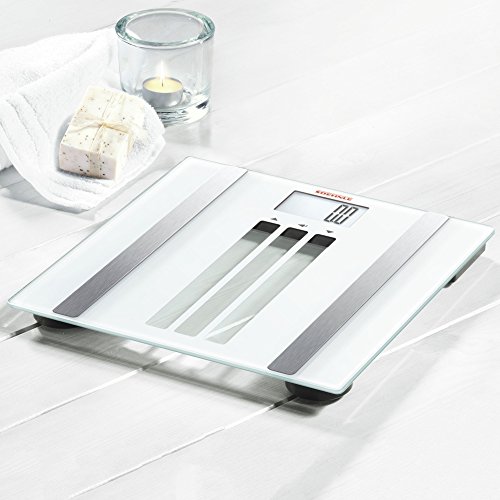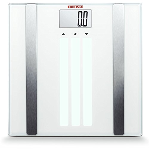 -. Binding : Kitchen -. Brand : Soehnle -. Color : White -. EAN : 0047738633568 -. Feature : Beginner's body mass analysis scale (400 lb. capacity) calculates: weight, body fat water Content, and muscle mass / Memory option for the values of up to 8 People and provides daily caloric intake goals / Load capacity of up to 180 kg/400 lb. and 100 g/0.2 lb. increments / Easy sensor touch operation / 0.8 inches high x 11.8 inches square; 1x3v (CR 2032) battery Included -. Label : Soehnle -. Manufacturer : Soehnle -. Model : 63356 -. MPN : 63356 -. NumberOfItems : 1 -. PackageQuantity : 1 -. PartNumber : 63356 -. ProductGroup : Home -. ProductTypeName : HOME -. Publisher : Soehnle -. ReleaseDate : 2016-06-01 -. Studio : Soehnle -. Title : Soehnle Body Control Easy Fit Personal Digital Bmi Weight Scale, White -. UPC : 047738633568