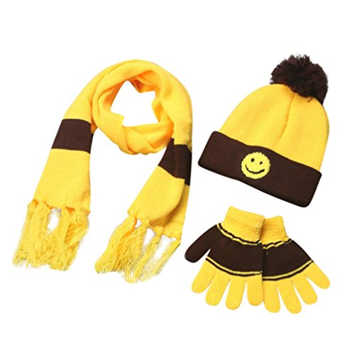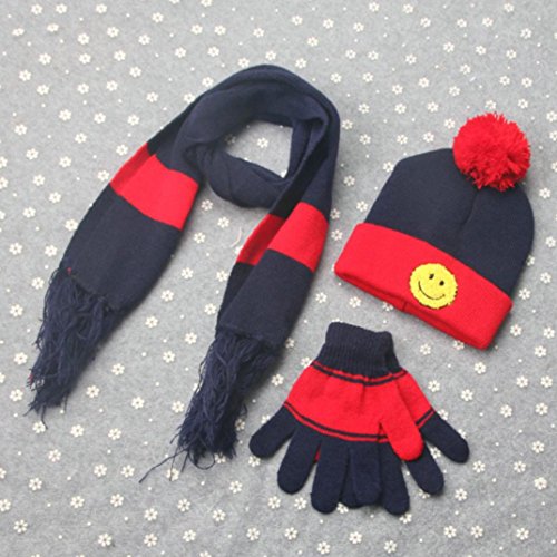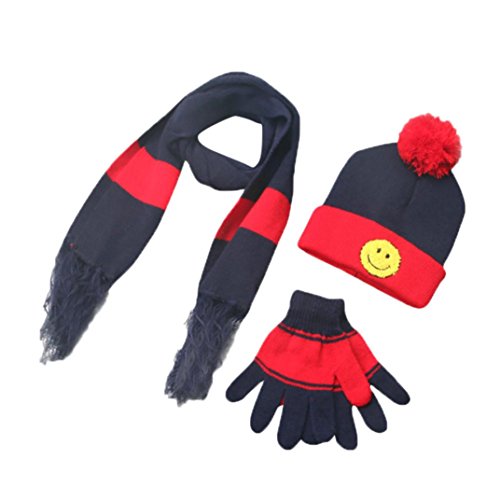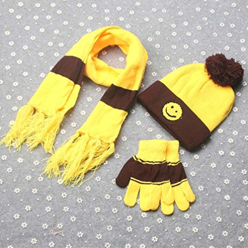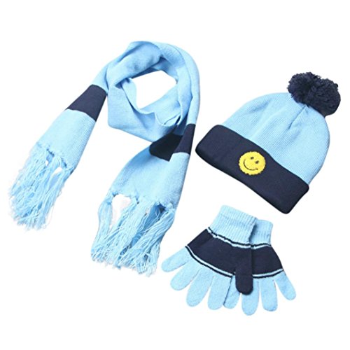 (Freshzone)/Accessories/Cold Weather Accessories/DIRECT FROM USA/Freshzone 3 Sets Winter Boys Girls Wool Smile Neck Scarf Warm Print Scarves Hat Full Finger Gloves