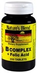 -. Binding : Health and Beauty -. Brand : Nature's Blend -. EAN : 0079854038385 -. Feature : All Natures Blend Products are American Made / Preservative and Gluten Free / No Starch, Salt, Artificial Flavors or Colors, Wheat, Yeast or Corn Added! -. Label : National Vitamin Company -. Manufacturer : National Vitamin Company -. MPN : 3838 -. PackageQuantity : 1 -. PartNumber : 3838 -. ProductGroup : Health and Beauty -. ProductTypeName : HEALTH_PERSONAL_CARE -. Publisher : National Vitamin Company -. Studio : National Vitamin Company -. Title : Nature's Blend B Complex plus Folic Acid 200 Tablets -. UPC : 079854038385