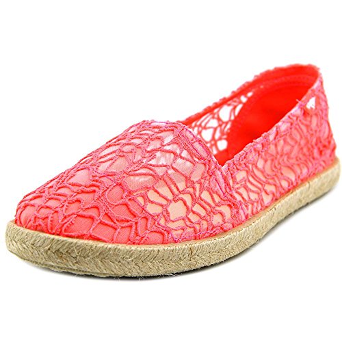 Style and comfort go hand in hand with this slightly transparent slip on flat. Features macrame and mesh material with flexible jute wrapped sole.