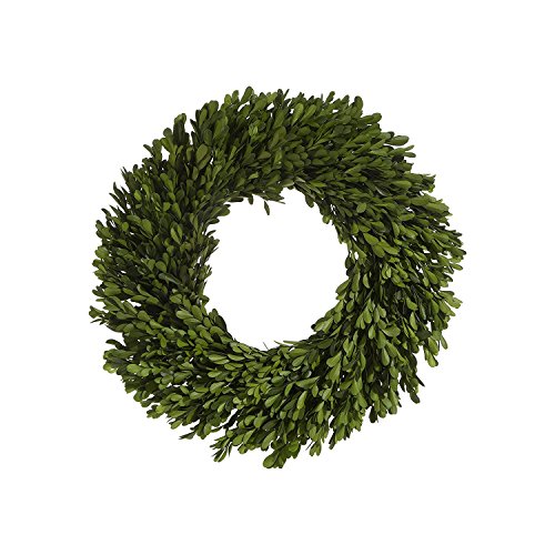 - Wreath is 17 inches with a natural boxwood branch base