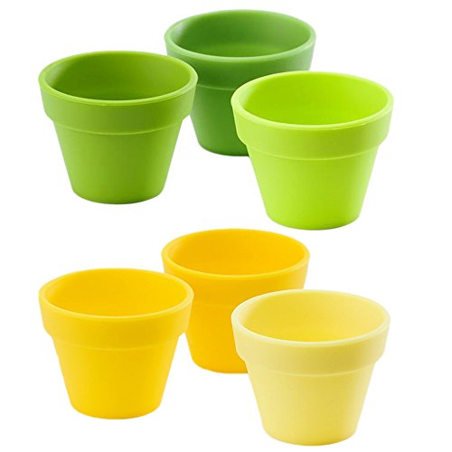 Petite Pots Silicone Mini Cups Set -- Pack of 6 Silicone Baking Pots (2 Colors). (Green and Yellow (6 Count))