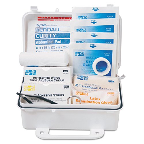 -. Binding : Misc. -. Brand : First Aid Only -. Color : WHITE -. EAN : 0738743060608 -. Feature : 10-person, 57-piece first aid kit for treating minor injuries / Weather-resistant plastic case is OSHA compliant for quality assurance / Can be wall-mounted or carried with attached handle / Contents exceed requirements of ANSI standard Z308.1-2009 for minimum requirements for workplace first aid kits and supplies / Measures 4.5 x 7.5 x 2.75 inches (H x W x D) / Contents inside box may be substituted with equivalent products in different brand names -. IsAutographed : 0 -. IsMemorabilia : 0 -. Label : Acme United -. Manufacturer : Acme United -. Model : 6060 -. MPN : 6060 -. NumberOfItems : 1 -. PackageQuantity : 1 -. PartNumber : 6060 -. ProductGroup : BISS -. ProductTypeName : LAB_SUPPLY -. Publisher : Acme United -. Studio : Acme United -. Title : Pac-Kit by First Aid Only 6060 57 Piece #10 ANSI First Aid Kit, Weatherproof Plastic Case -. UPC : 738743060608 -. Warranty : Manufacturer