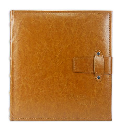 Golden State Art, Photo Album, Holds 200 5"x7" Pictures, 2 Per Page, Faux Leather Vintage Inspired Cover with Strap Closure, N55011-2 Brown