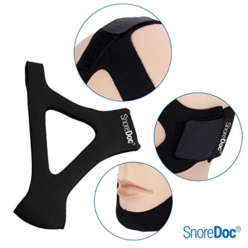 Snoring research has shown that a jaw supporter, keeping the lower jaw in an upward position increases the three-dimensional space in the airway reduces air velocity and soft tissue vibration. This action can eliminate or substantially reduce snoring SnoreDocTM Fully Adjustable Anti-Snoring Chin Strap - Natural and Instant Snore Relief