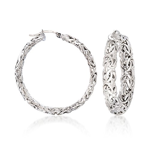 With a style evocative of the ancient Byzantine Empire, these iconic hoop earrings are sure to make an impression. Skilled craftsmen perform an age-old technique to achieve the intricate Byzantine look and Ross-Simons brings it to you at an exceptional value. Includes a white rhodium finish for tarnish-resistance. Hanging length is 1 1/2". Snap-bar, sterling silver Byzantine hoop earrings. Each Ross-Simons item arrives in a fine jewelry presentation box. Shop Ross-Simons jewelry risk-free as all items include a 30-day, 100% money-back guarantee.Feature