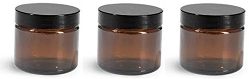 1 Ounce Amber Glass Jars with Black Twist Lined Lid [Pack of 3]