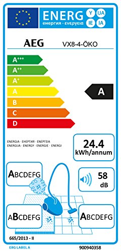 AEG VX8-4-OKO Staubsauger mit Beutel EEK A (750 Watt, nur 58 dB(A), inkl. Hartbodenduse, 12 m Aktionsradius, Softrader, 3,5 Liter Staubbeutelvolumen, waschbarer Allergy Plus Filter