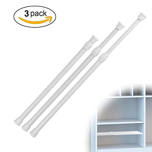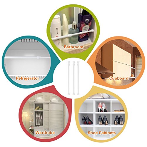 Tensions Rod, Aieve 3 Pack Cupboard Bars Tensions Rod Spring Curtain Rod Tension bar Adjustable Closet Rod for Wardrobes, Shoe Cabinets, Refrigerator, Shower Curtain, 11.7 to 20.5 Inches (White)