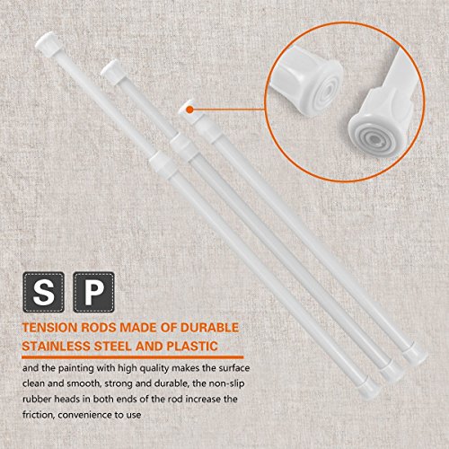 - Tension rods made of durable stainless steel and plastic, and the painting with high quality makes the surface clean and smooth, strong and durable, the non-slip rubber heads in both ends of the rod increase the friction, convenience to use