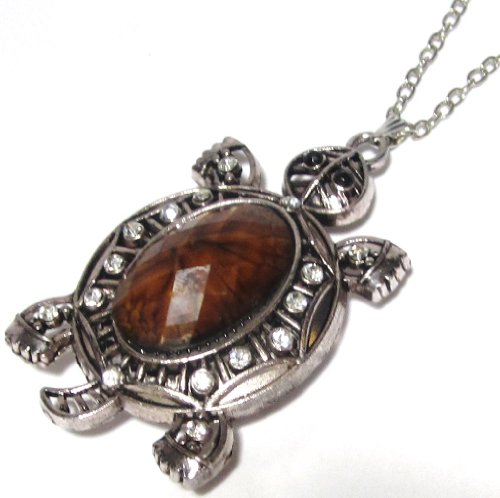 - Title : Metallic Turtle Necklace - Glamorous Marine Turtle - Aquatic Turtle - Hawaiian Honu Turtle Jewelry - Silver Tone and Brown Color