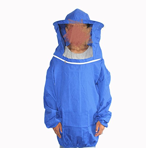 Hot sale! Austin's Agricultural Equipment Professional Max Protection Beekeepers Jacket Clear View Fencing Round Veil Smock Equipment, Universal Size, Polyester and Cotton in Blue or White
