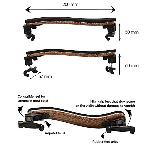 KyFlex Violin Shoulder Rest for 4/4 and 3/4 sizes - Plastic& Veneer (Fake wood) Shoulder Rest with Collapsible & Professional Adjustable for Both Height and Angle Black Feet Fit