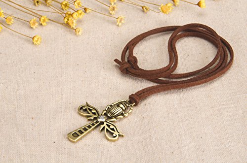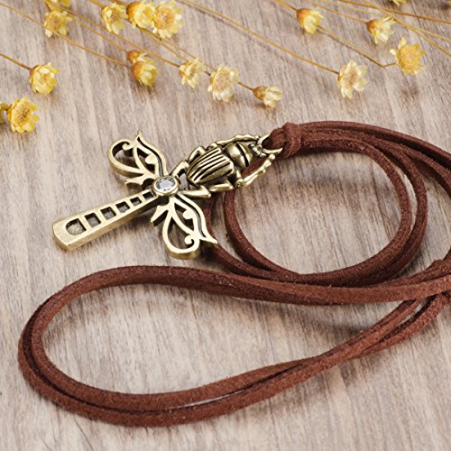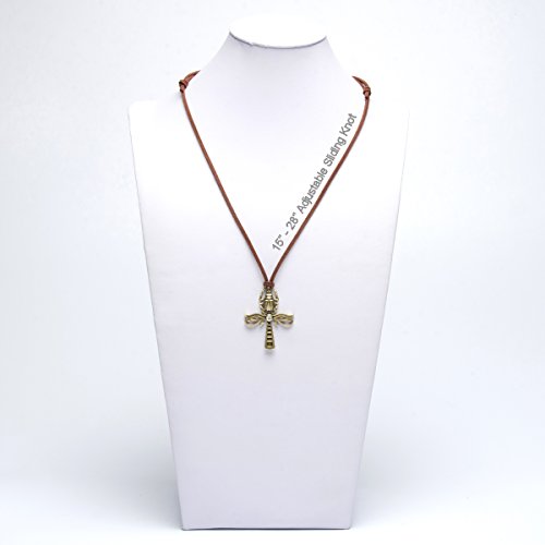 Material: Made of lead free brass, the ancient bronze ankh pendant is environmental friendly electroplated, free of Pb, Ni and Cd, durable and not easy to fade. Cubic zirconia inlayed. Soft brown adjustable sliding knot leather cord matching it.