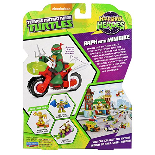 -. Binding : Toy -. Brand : Teenage Mutant Ninja Turtles -. EAN : 0043377961048 -. Edition : 1st -. Feature : Young heroes will enjoy recreating Turtle adventures of inventing their own - controlling the action as imaginations soar in a world of heroes and mutants, adversaries and allies It's a new adventure every time you play Turtle Power! / You can collect the entire world of Half-Shell Heroes / Try Me package / 2012 Viacom International Inc. All Rights Reserved TEENAGE MUTANT NINJA TURTLES and all related titles, logos and characters are trademarks of Viacom International Inc. -. IsAdultProduct : 0 -. ItemPartNumber : 96104 -. Label : Playmates - Toys -. Manufacturer : Playmates - Toys -. Model : 96104 -. MPN : 96104 -. PackageQuantity : 1 -. PartNumber : 96104 -. ProductGroup : Toy -. ProductTypeName : TOYS_AND_GAMES -. Publisher : Playmates - Toys -. Studio : Playmates - Toys -. Title : Teenage Mutant Ninja Turtles Pre-Cool Half Shell Heroes Raphael with Mini Cycle Figure Set (2 Pack) -. UPC : 043377961048 -. Warranty : No Warranty