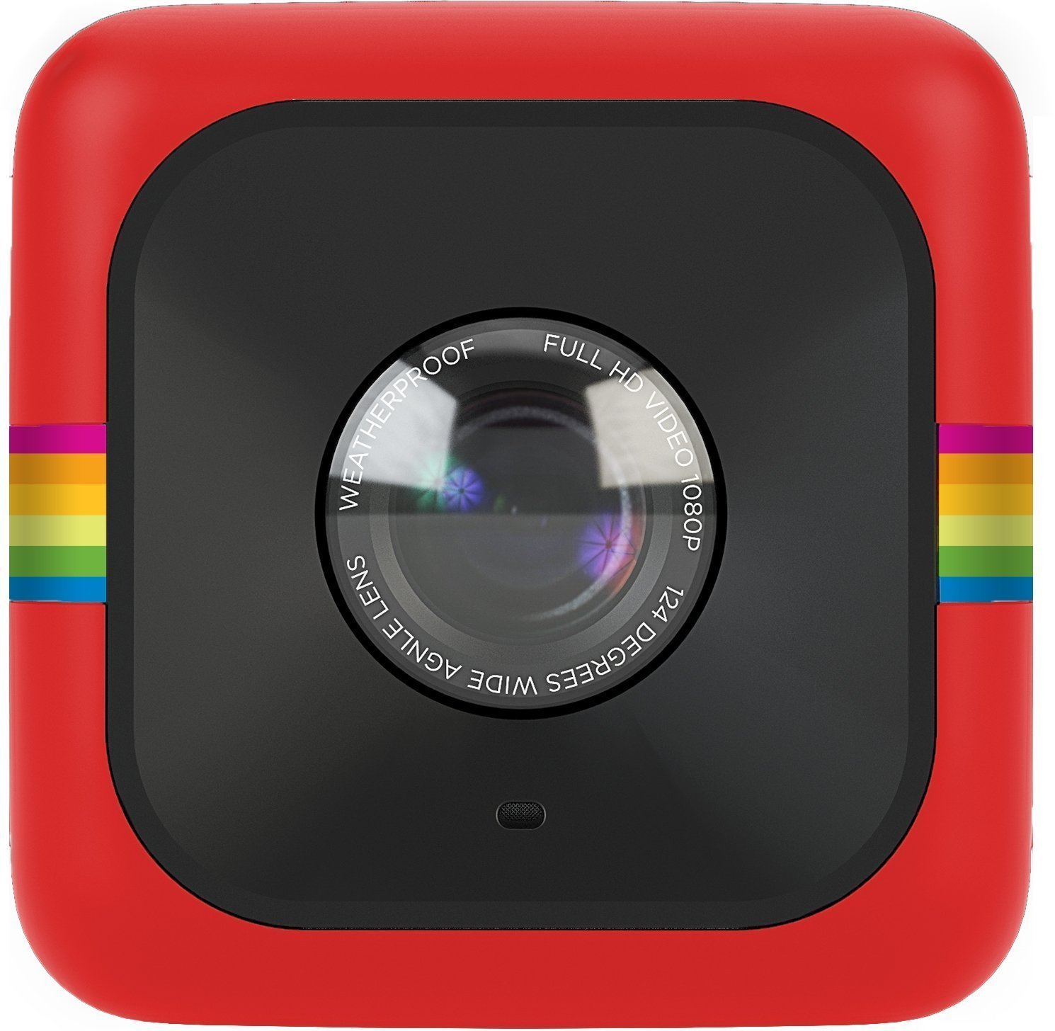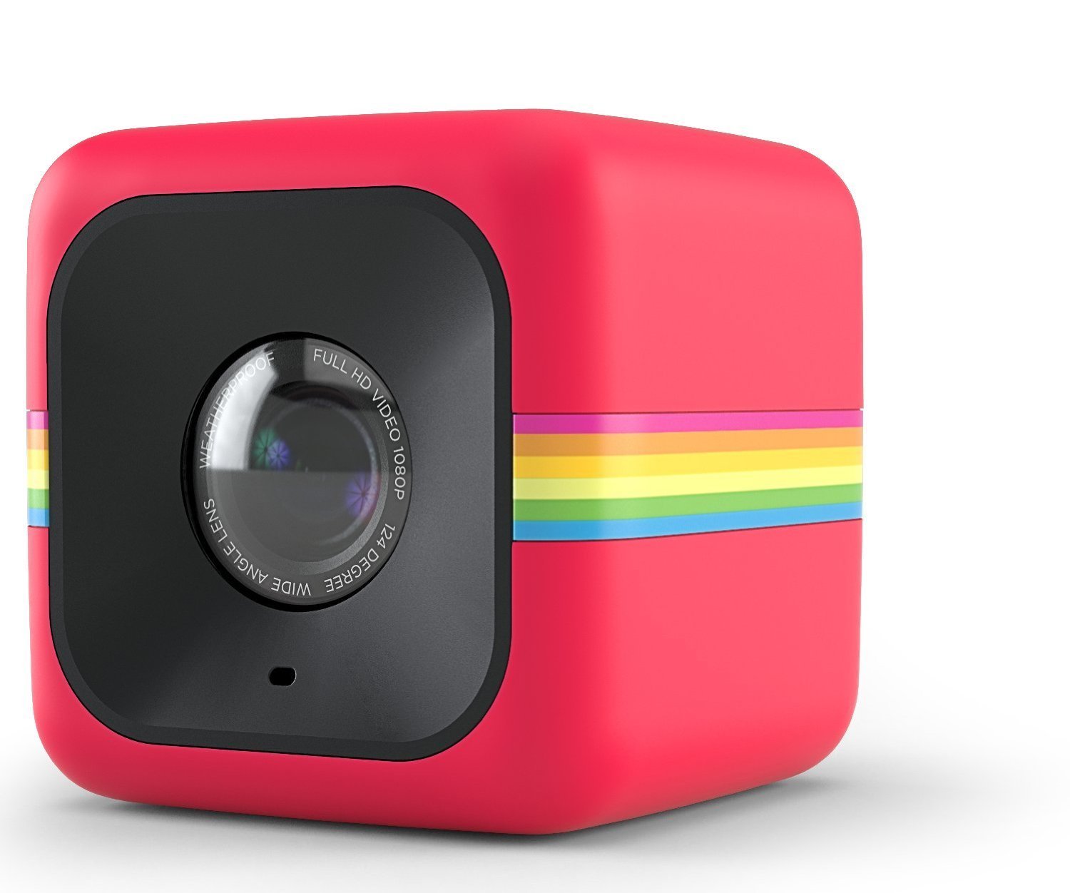 A palm-sized compact action camera that can shoot moving pictures and still images, a polaroid rainbow stripe design for fancy 3 colors.