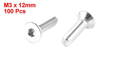 100pcs 304HC Steel Hex Countersunk Flat Head Bolts Screws M3x12mm